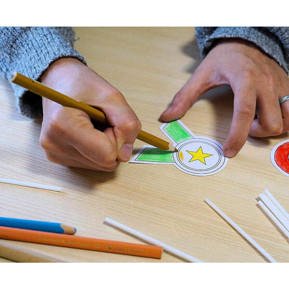 Det er kun fantasien der sætter grænser for hvordan de skal se ud, da I/du selv hygger med at farvelægge og påsætte dem de medfølgende pinde inden fodboldfesten, børnefødselsdagen eller lignende.