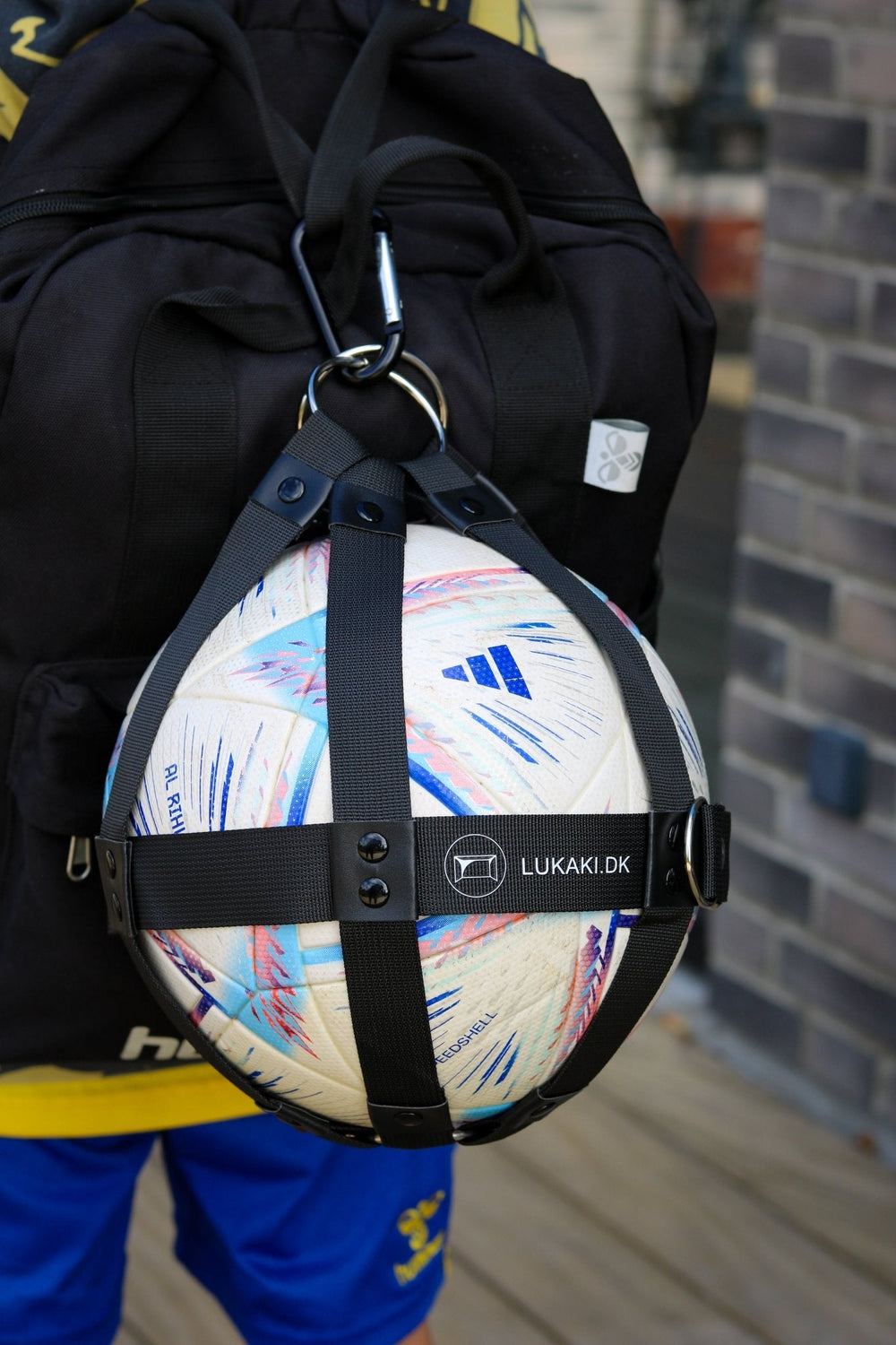 - Medfølgende boldholder med karabinhage, der nemt fastgøres på rygsækken eller andre tasker