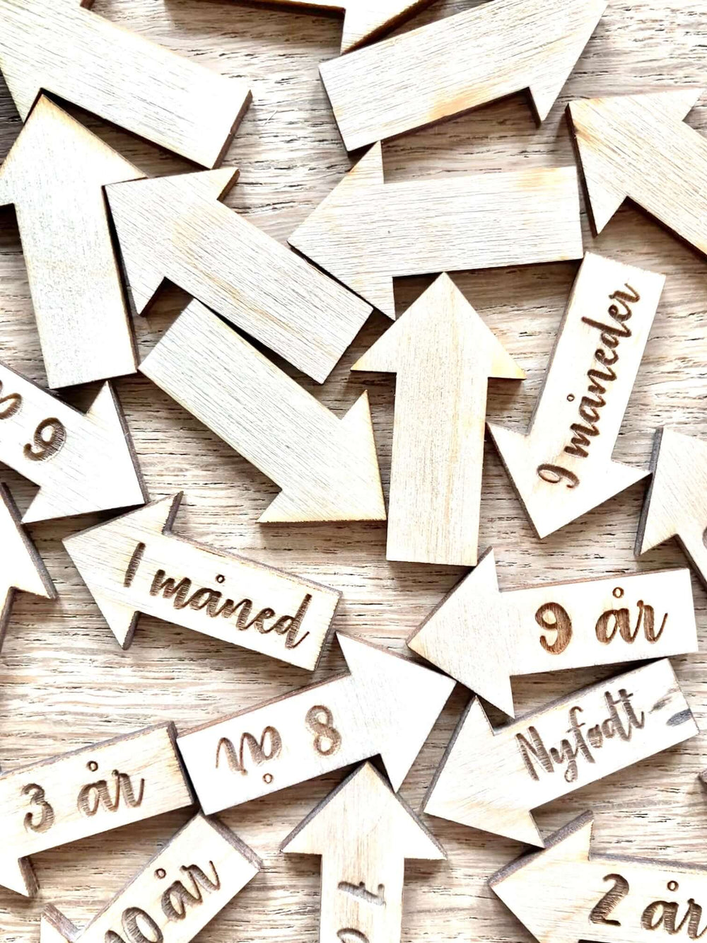 Højde fra 40 cm til 170 cm. inkl. pile til at klistre på. Nyfødt til 10 år plus 10 tomme pile