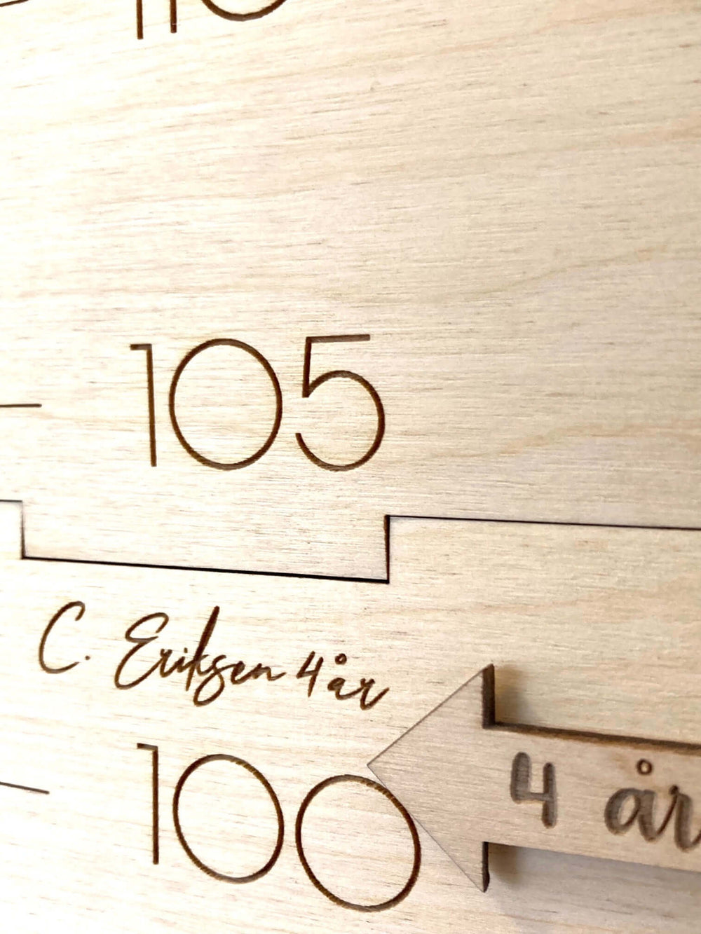 Højdemåler med fodboldidoler og evt. valgfrit navn i toppen (inkl. markeringspile)