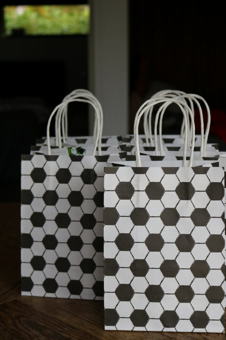 Presentpåse med fotbollstema – Tjock kartong (16x22x9 cm)