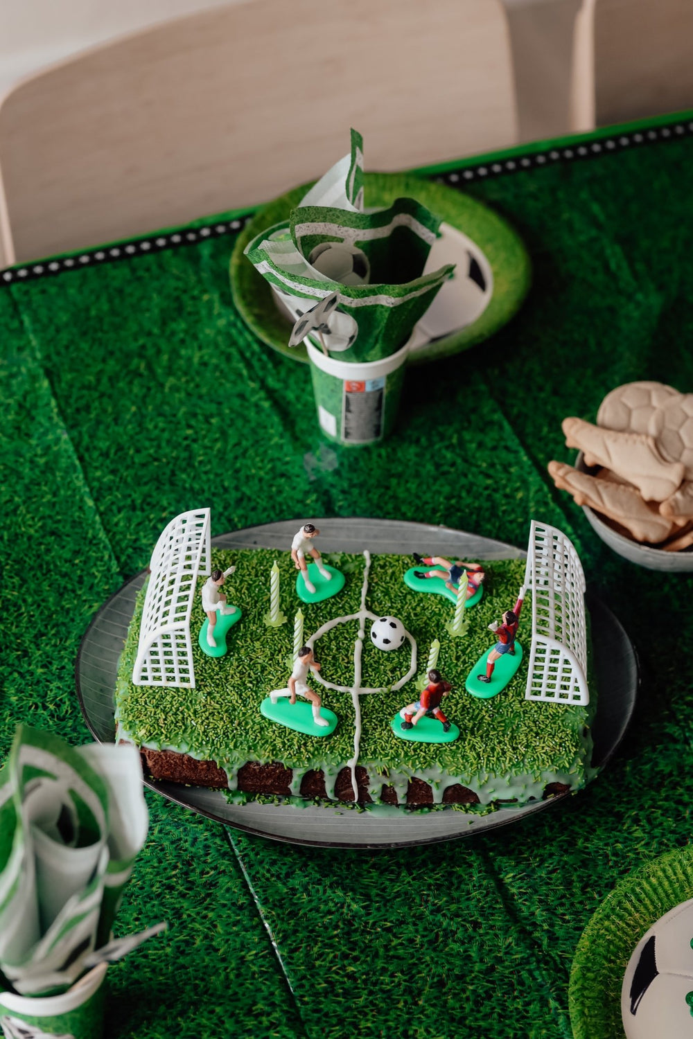 Dekorera bordet i bästa fotbollsstil med denna smarta och återanvändbara plastduk. Alla små eller stora fotbollsfantaster/födelsedagspojkar/tokiga kommer att ha lite roligare med denna duk.