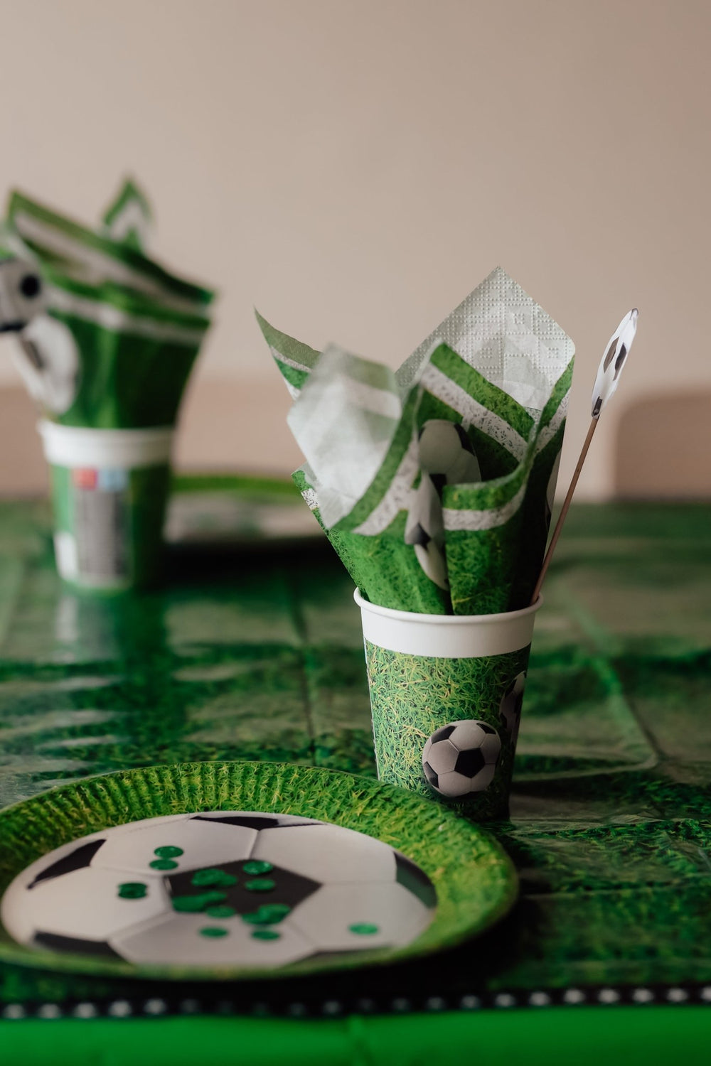 Skapa en festlig stämning inför matchstarten med dessa coola pappersmuggar i grönt fotbollstema! De är perfekta för födelsedagar, fotbollsfester och temakvällar med sport i centrum. Muggarna kan användas till både kalla och varma drycker och är enkla att matcha med andra fotbollsdekorationer.