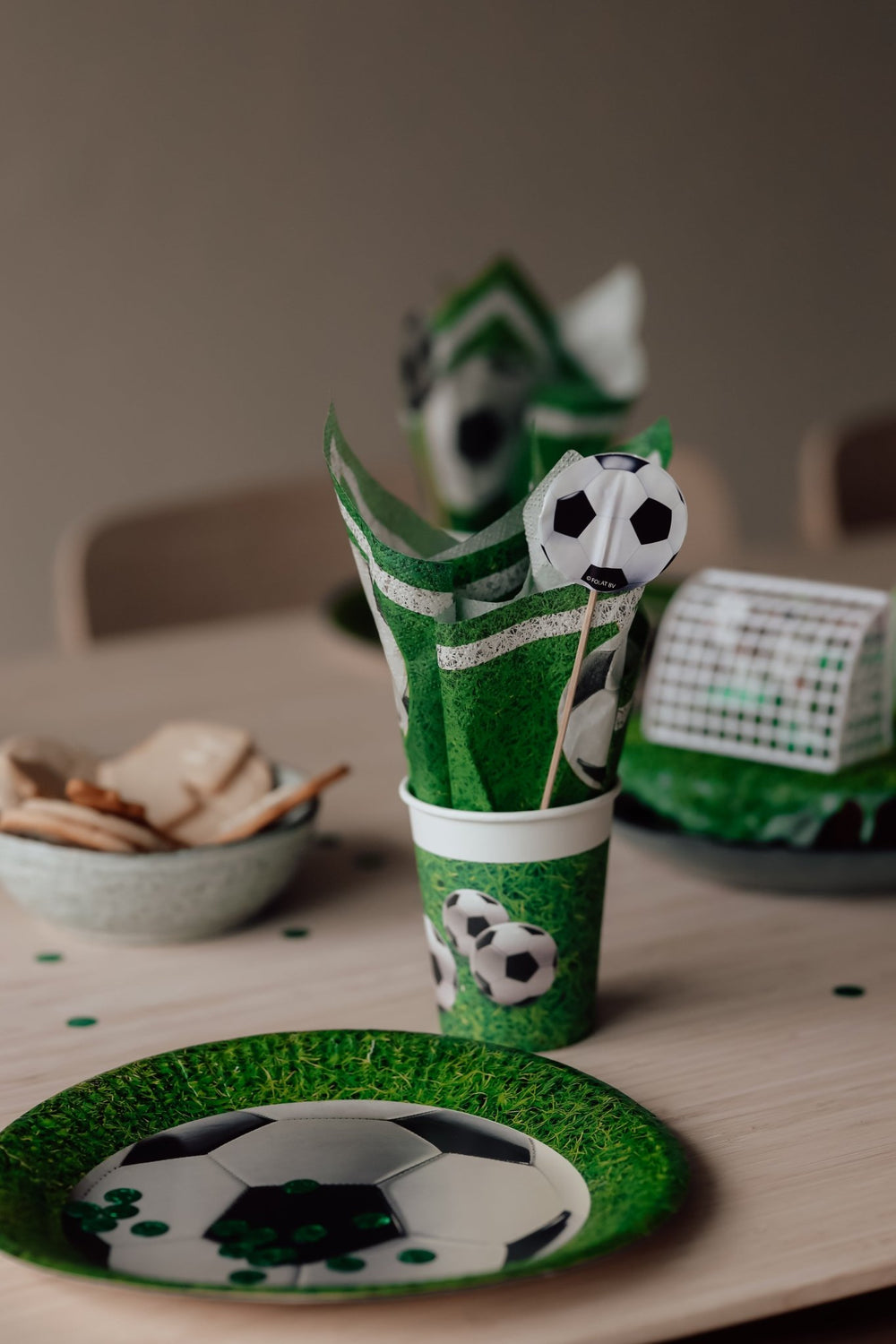 Gör i ordning ditt matchbord med dessa festliga fotbollsservetter! Perfekta för födelsedagar, fotbollsfester eller EM-/VM-kvällar. Servetterna har en grön fotbollstema-design som skapar precis rätt stadionatmosfär.