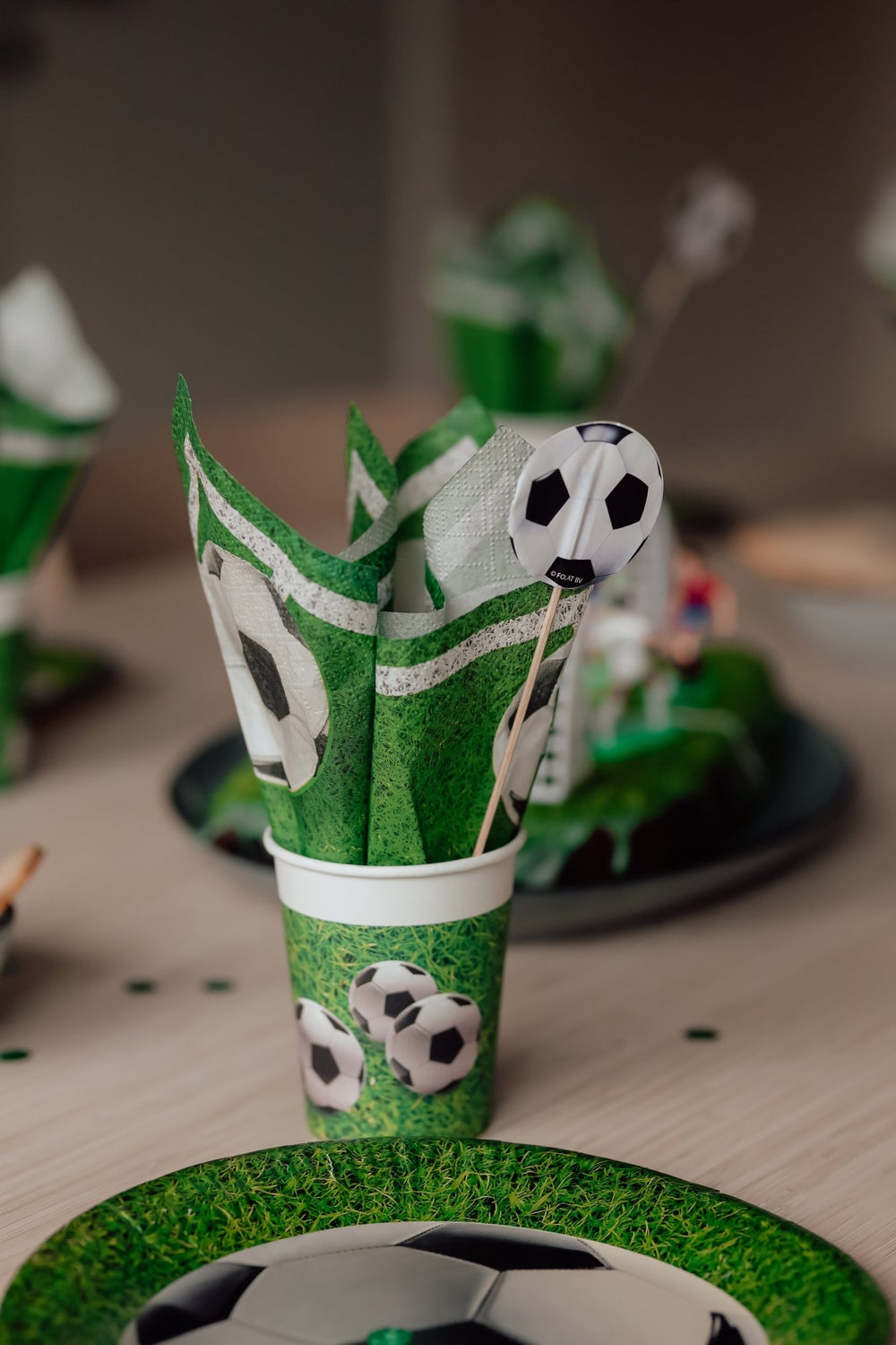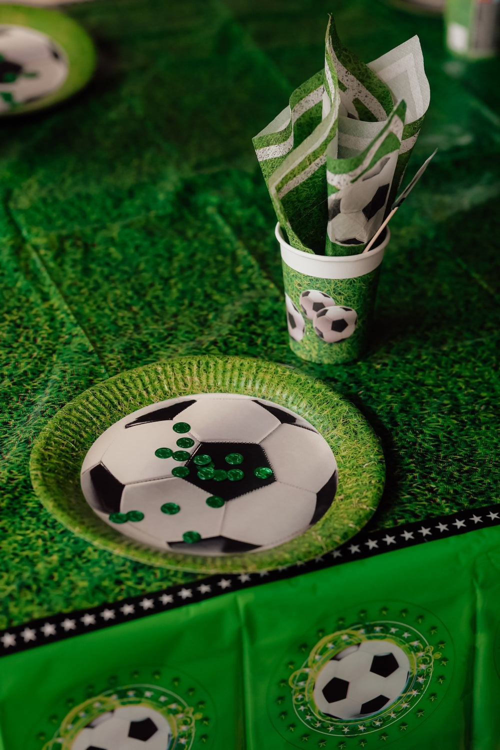 • Passar perfekt med matchande fotbollsdekorationer och engångsservis